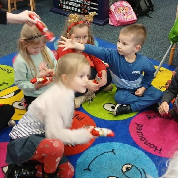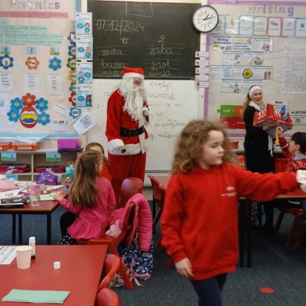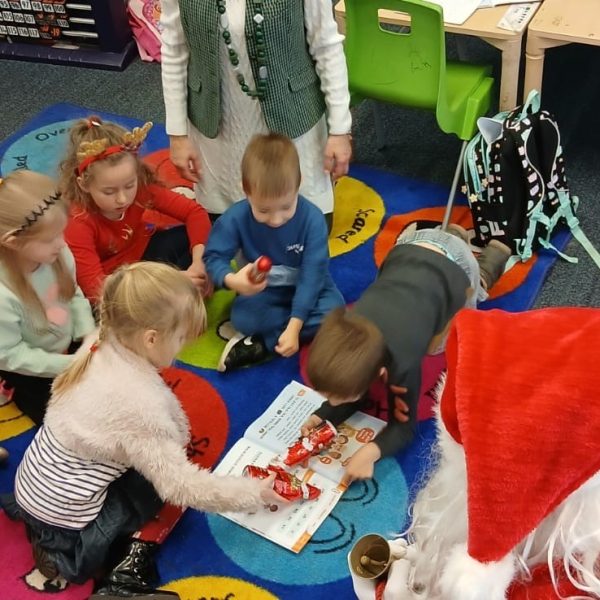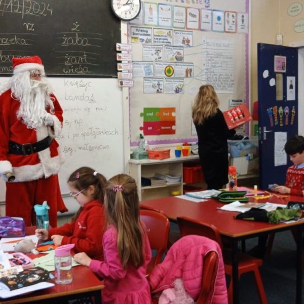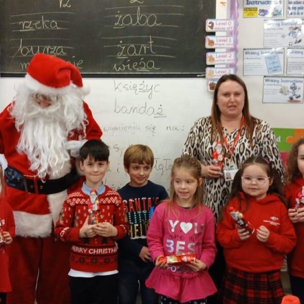 W sobotę 7 grudnia mieliśmy przyjemność gościć polski teatr z Edynburga ,,Lustro SCENY” ze spektaklem ,,Kot w butach”. Teatr innowacyjnie inscenizuje klasykę, prezentuje ciekawe widowisko, zachęca widza – dzieci do współpracy, do wspólnego śpiewania. Sztuka bardzo wszystkim się podobała i dostarczyła wiele pozytywnych emocji. Po przedstawieniu odbyła się sesja zdjęciowa wszystkich grup, nauczycieli z aktorami i ,,Kotem w butach.”