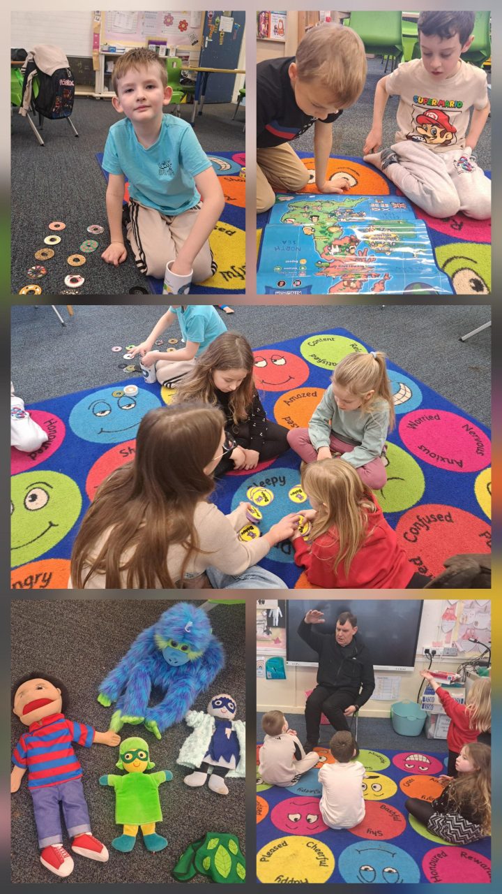 Uczniowie pracowali z podręcznikiem. Widać zdjęcie z czytanką o teatrze, które wprowadza uczniów w świat sceny, aktorów i przedstawień. Dzieci rysowały i tworzyły własne kukiełki, za pomocą których można urządzić własny teatrzyk.