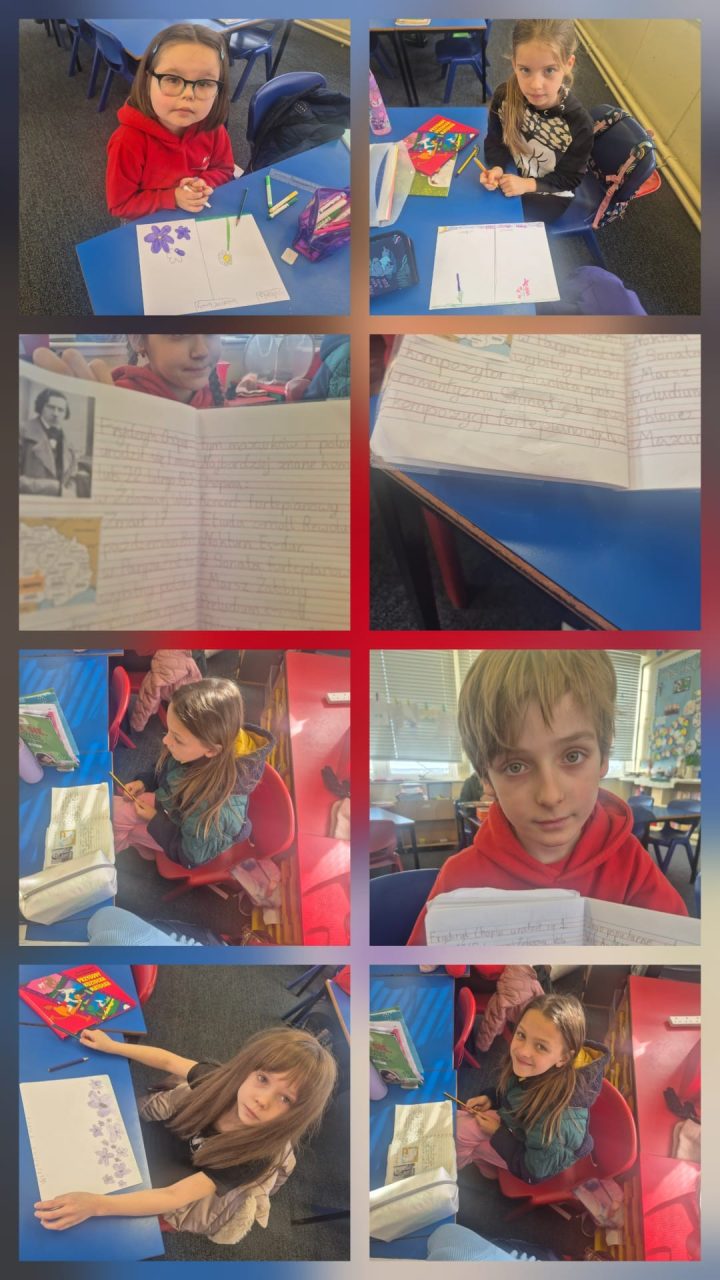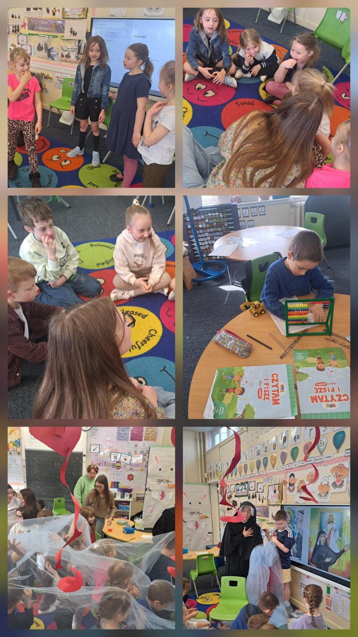 Tematem naszych zajęć był 21 marca, czyli kalendarzowa wiosna. Rozmawialiśmy o astronomicznej wiośnie oraz o tym co dzieje się obecnie w świecie roślin i zwierząt. Gabrysia zaprezentowała swoją pracę jako zadanie dla chętnych – najważniejsze polskie przysłowia. Mieliśmy gościa – odwiedziła nas siostra Gaudia Skass, znana zakonnica ze Zgromadzenia Sióstr Matki Bożej Miłosierdzia w Łagiewnikach, która pięknie opowiedziała nam swoją historię życia zakonnego i ciekawie przedstawiła elementy znanego obrazu Jezu Ufam Tobie ❤️ Na koniec powstały pracę plastyczne – WIOSNA 🥀🌷😀To był fantastyczny dzień 👍😁